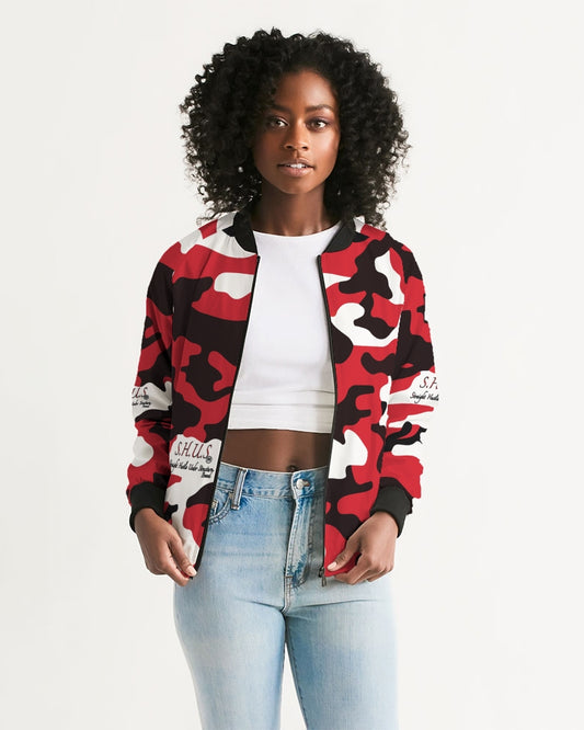 SHUS Brand Red Camo Luxury Women's Bomber Jacket