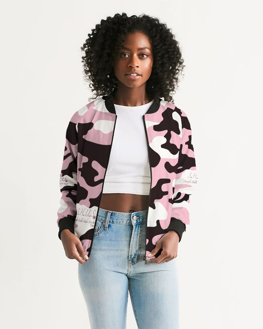 SHUS Brand Pink & Ready Camo Women's luxury Bomber Jacket
