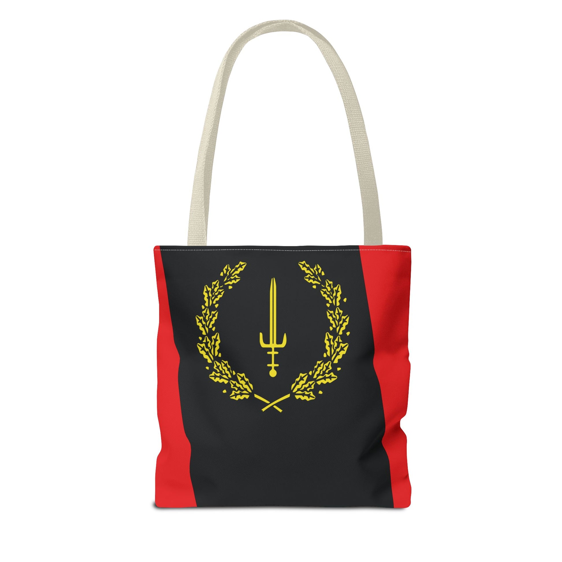 The Black American Heritage flag was designed in 1967 by Melvin Charles and Gleason T. Jackson. According to the designers, "...the elements of the flag include the color black to represent pride and pigmentation and race; red, to remind us of the rich blood black men have shed for freedom, equality, justice and gold, to represent intellect, prosperity, and peace. These colors are woven into a composition that juxtaposes the red and black in a set of three stripes: one black stripe centered between two red." " Superimposed on the black stripe is a golden wreath of fig leaves. The cultivated fig is a native of Africa, and ranks as one of the most ancient of life-sustaining fruits. Centered within the golden wreath is a blunted Moorish boarding sword, symbol of leadership carried by the great Moorish leaders of the 8th century. The sword represents the strength and authority exhibited by a black culture that made many contributions to the world in mathematics, art, medicine, and physical science, heralding the contributions that Black Americans would make in these and other fields."