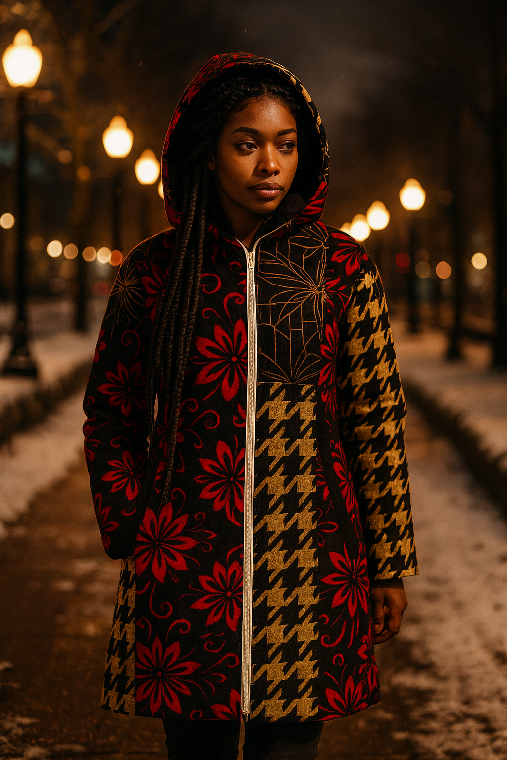 This all-over print coat is made of 20D nylon fabric and cotton to produce a hoodie of beautiful design.