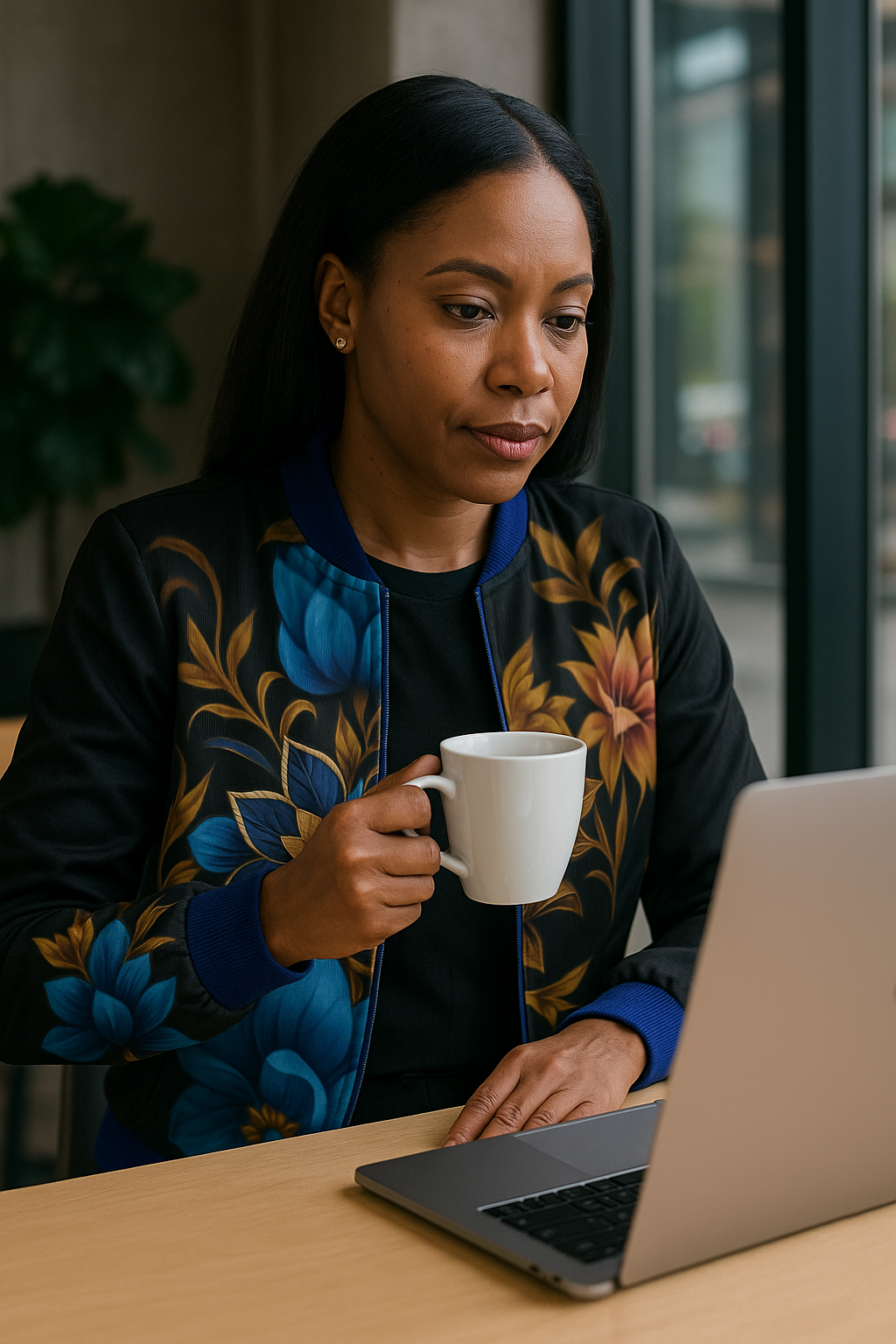 Invest in a versatile, couture-quality piece that combines 100% silk luxury with reversible functionality and print-ready design. Available in inclusive sizes — secure your SHUS silk bomber and redefine effortless style.